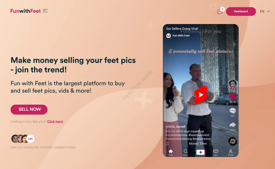 Fun with Feet — это вторая по популярности платформа, где можно зарабатывать на продаже фото и видео ног. Сайт для тех, кто хочет монетизировать свой контент на нишевой фут фетиш площадке.