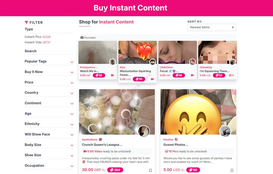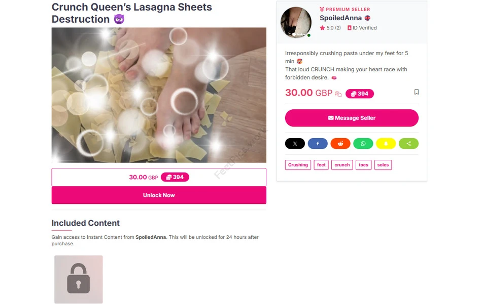 Один из самых разнообразных маркетплейсов по видам фетиш-контента. Футфетиш здесь занимает крупную нишу, но не единственную.