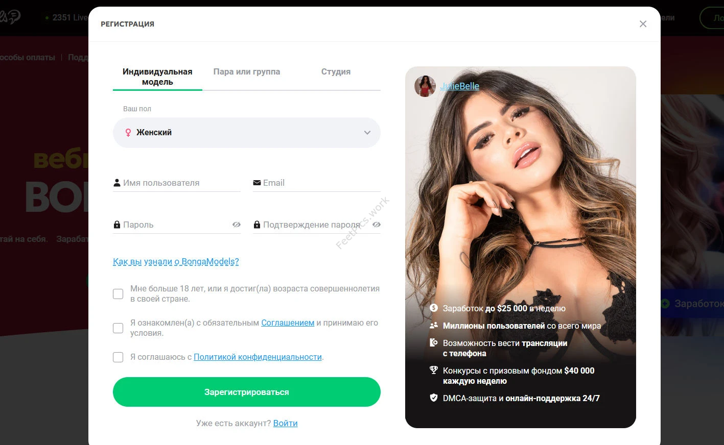 BongaCams и BongaModels: регистрация и заработок на платформе